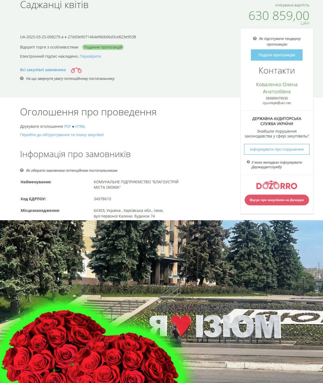 😐Meanwhile, Izyum announced the purchase of flower seedlings for UAH 630.9 thousand, - ProZorro.