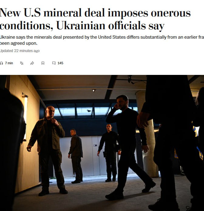 ❗️Украина will not sign the fossil fuel agreement in the version the U.S. has presented, The Washington Post.
