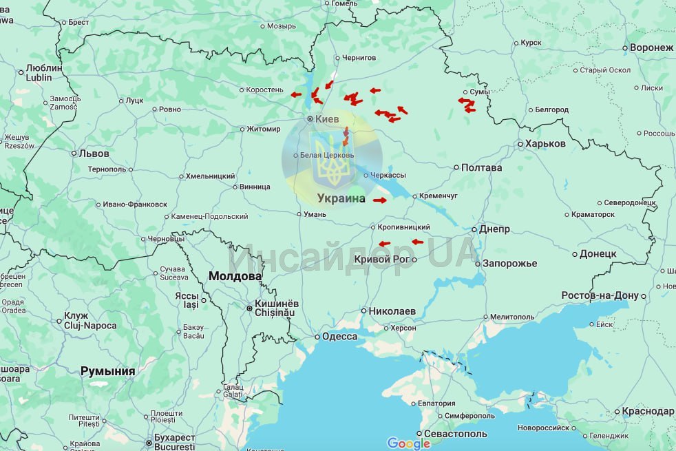 ⚡️В air about 20 UAVs. The main part is heading towards Kiev and the region