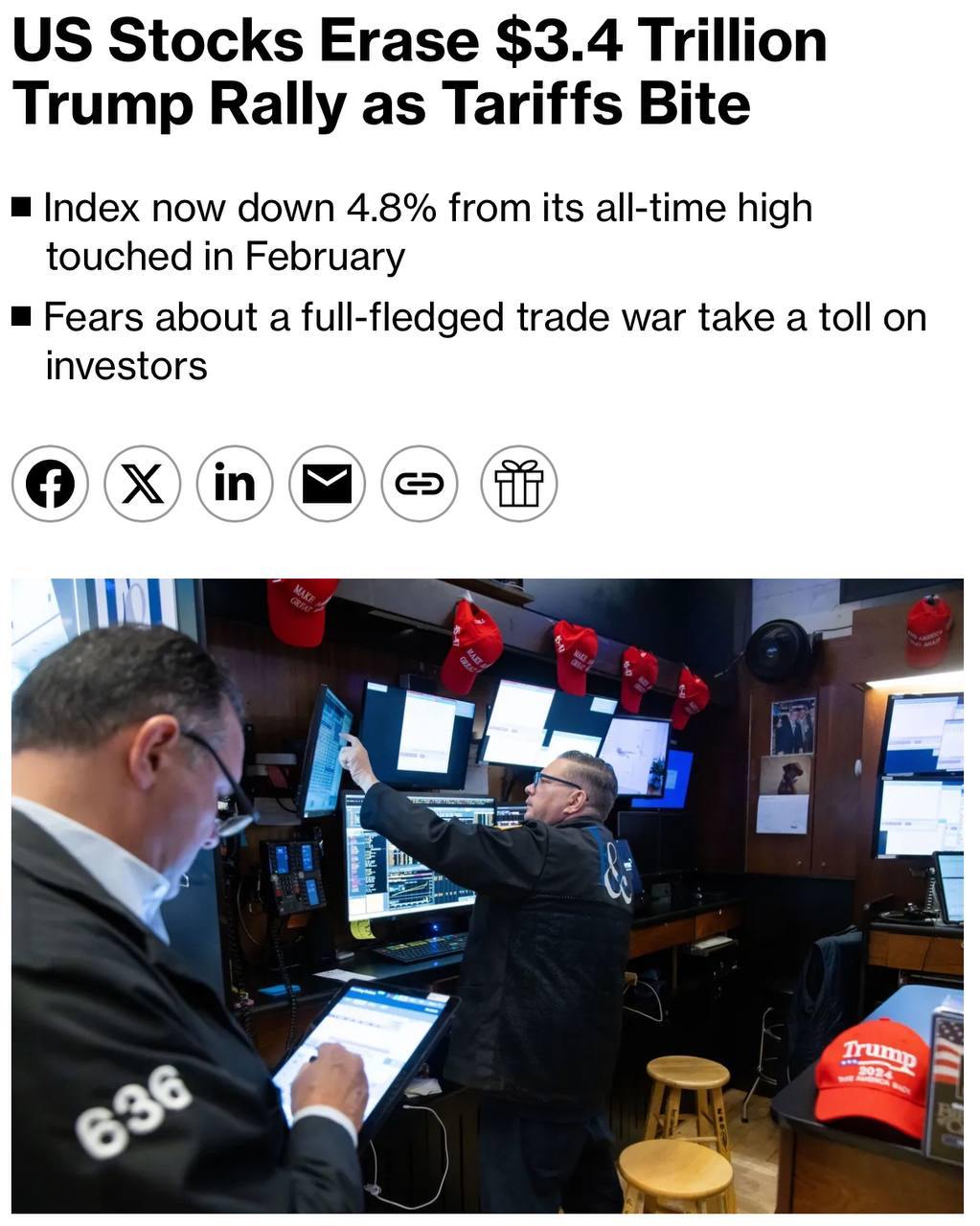 ⚡️Американські stocks are going down. They have already fallen in value by $3.4 trillion - Bloomberg