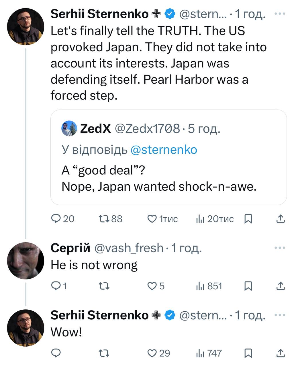 Pearl Harbor brazenly attacked Japanese airplanes, peaceful airplanes that did not threaten anyone.