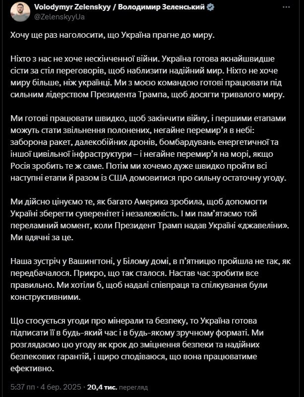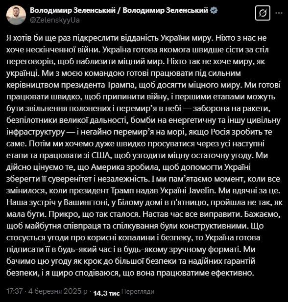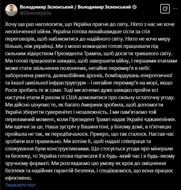 ❗️Зеленский wrote a post about the White House altercation in which he did NOT apologize to Trump