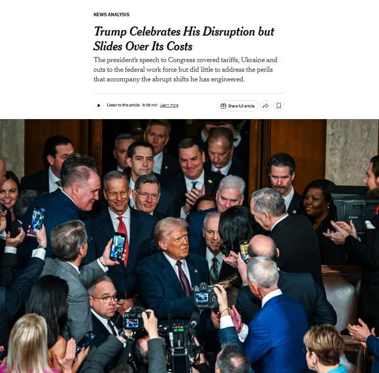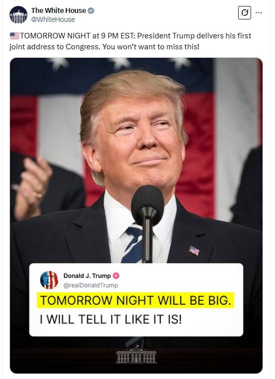 At 4 a.m. Kyiv time, Trump will give a speech in Congress, focusing on 4 areas, one of which is Ukraine.