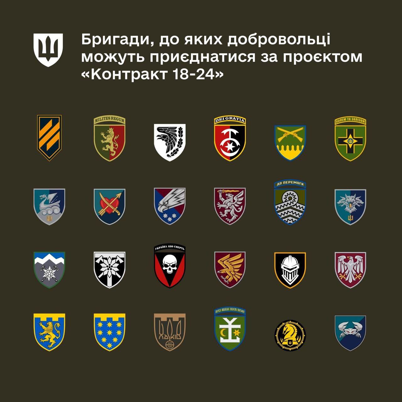 ⚡️Тепер Volunteers can join 24 brigades of the Armed Forces under the "Contract 18-24" - Ministry of Defense
