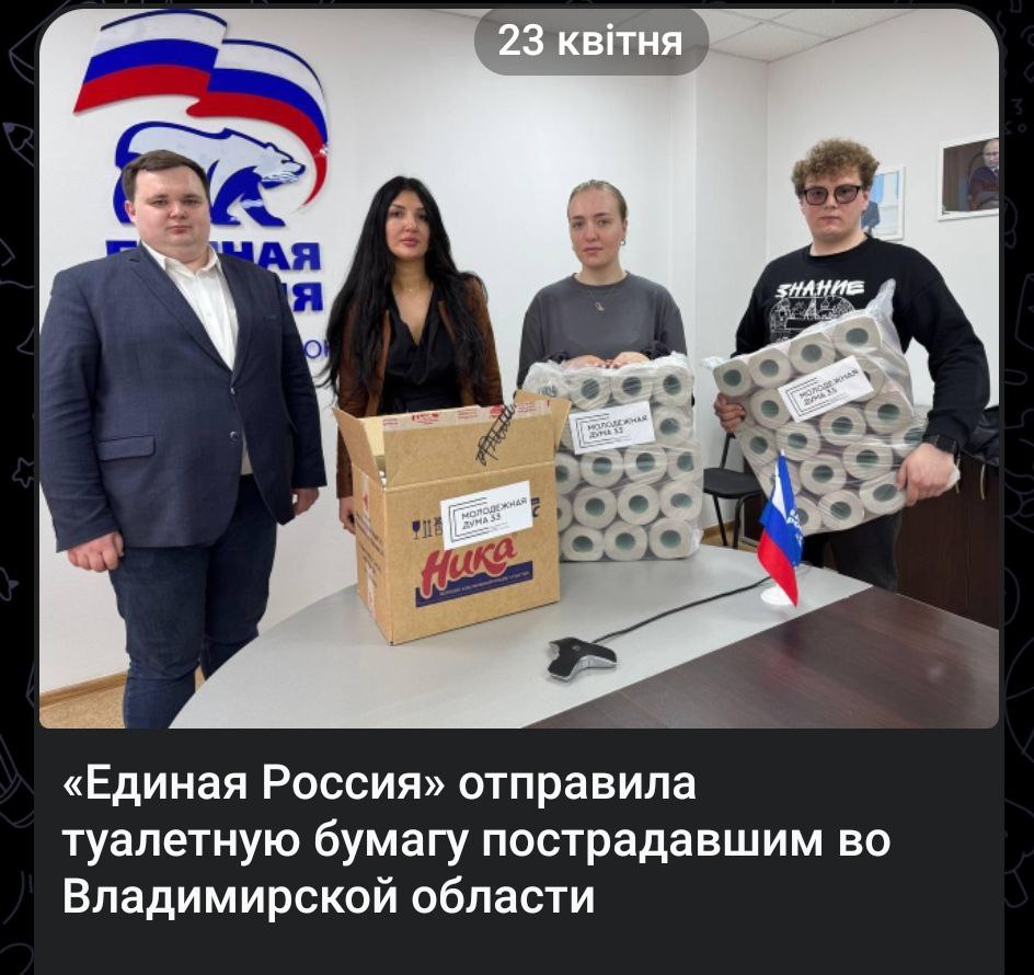 "United Russia" sent toilet paper to the affected Russians in the Vladimir region