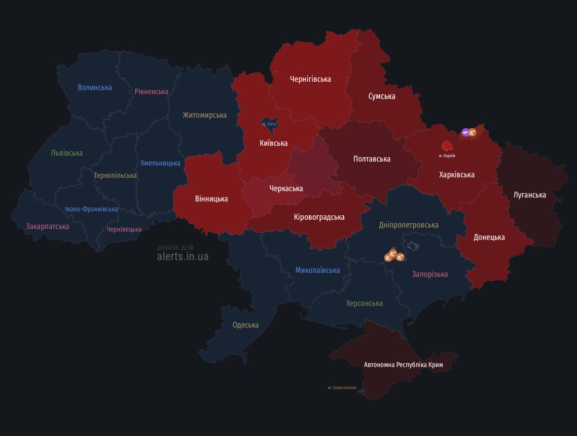 ▪️Під Russia's massive combined strike targeted Kyiv and the region, Zhytomyr, Dnipro, Kharkiv, Poltava, Khmelnytsky, Sumy, and Zaporizhzhia.