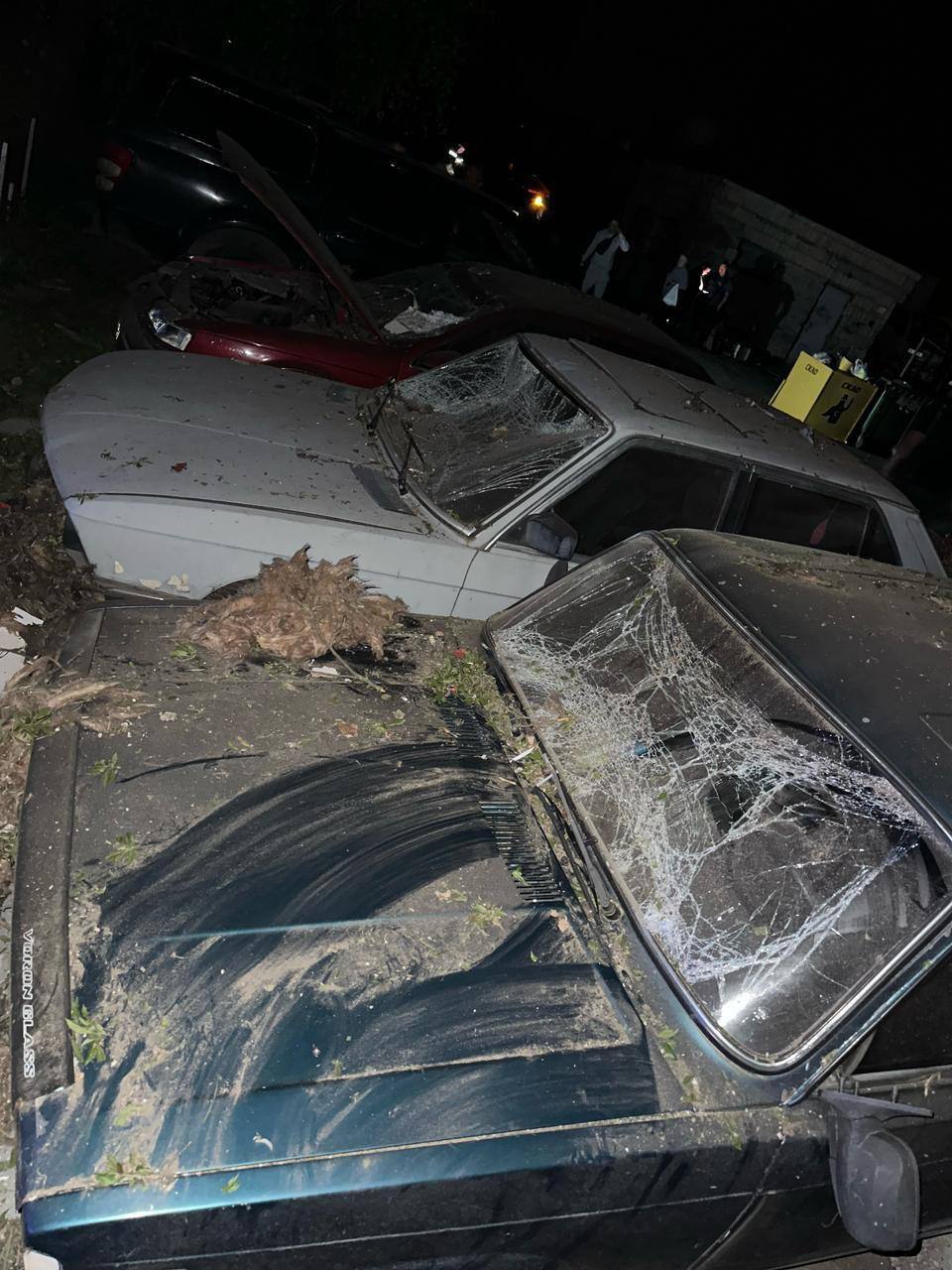 At least 20 garages were damaged, cars were also damaged.
