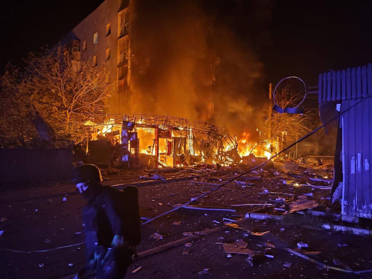 ▪️Бучанский district: two women were injured (acute stress reaction, assistance provided). 3 five-storey buildings were damaged (one was on fire), 4 stores, 8 cars and a public transportation stop.