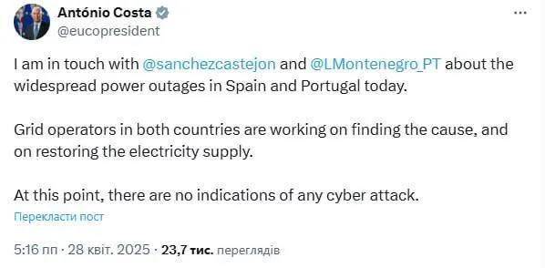 😱Today's power outage is being called one of the most powerful in Europe's modern history - FT.