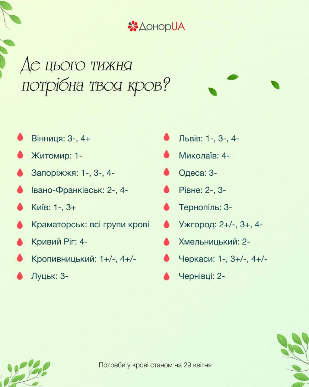 ▫️Краматорськ: all blood groups
