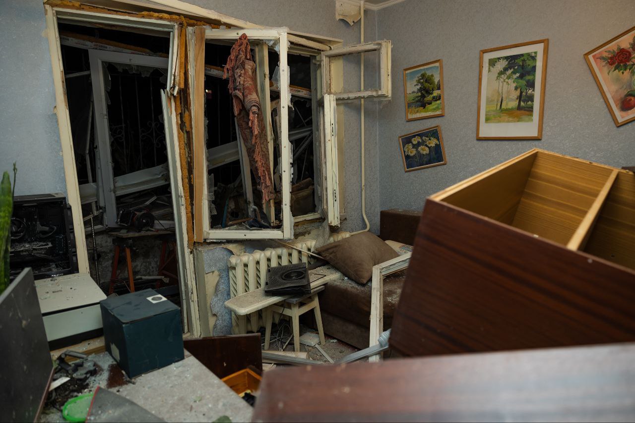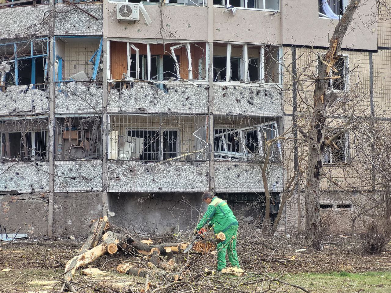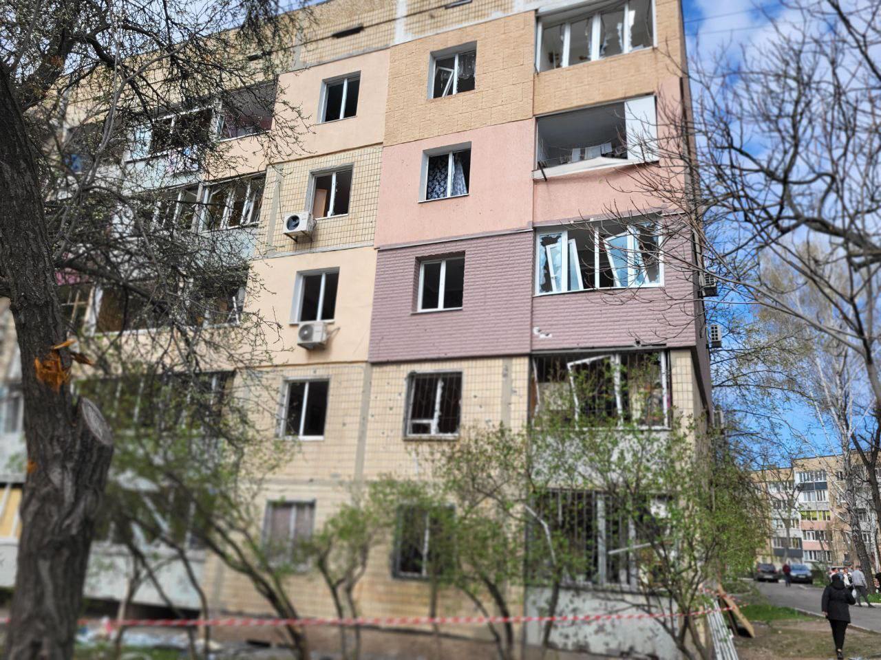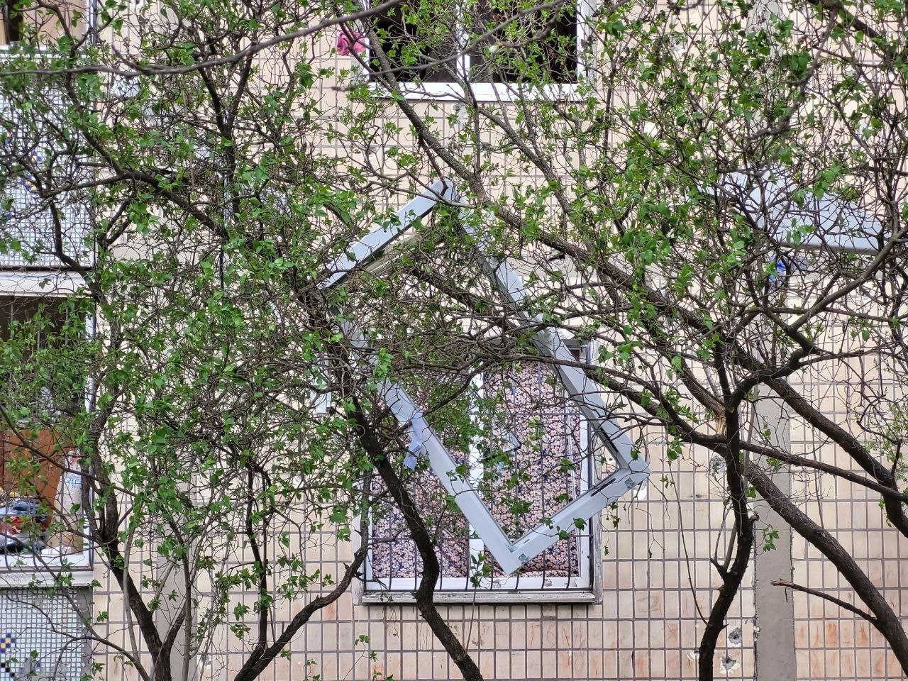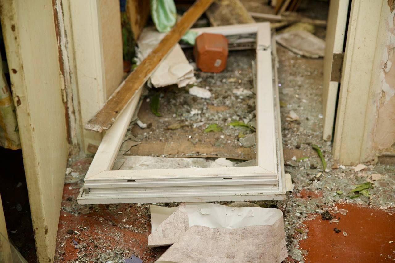 A private house was partially destroyed, another one was damaged. Eight multi-storey buildings, garages, 14 cars, minibuses and a truck were damaged. There is destruction on the territory of an industrial enterprise. Playgrounds and a tram line were hit.