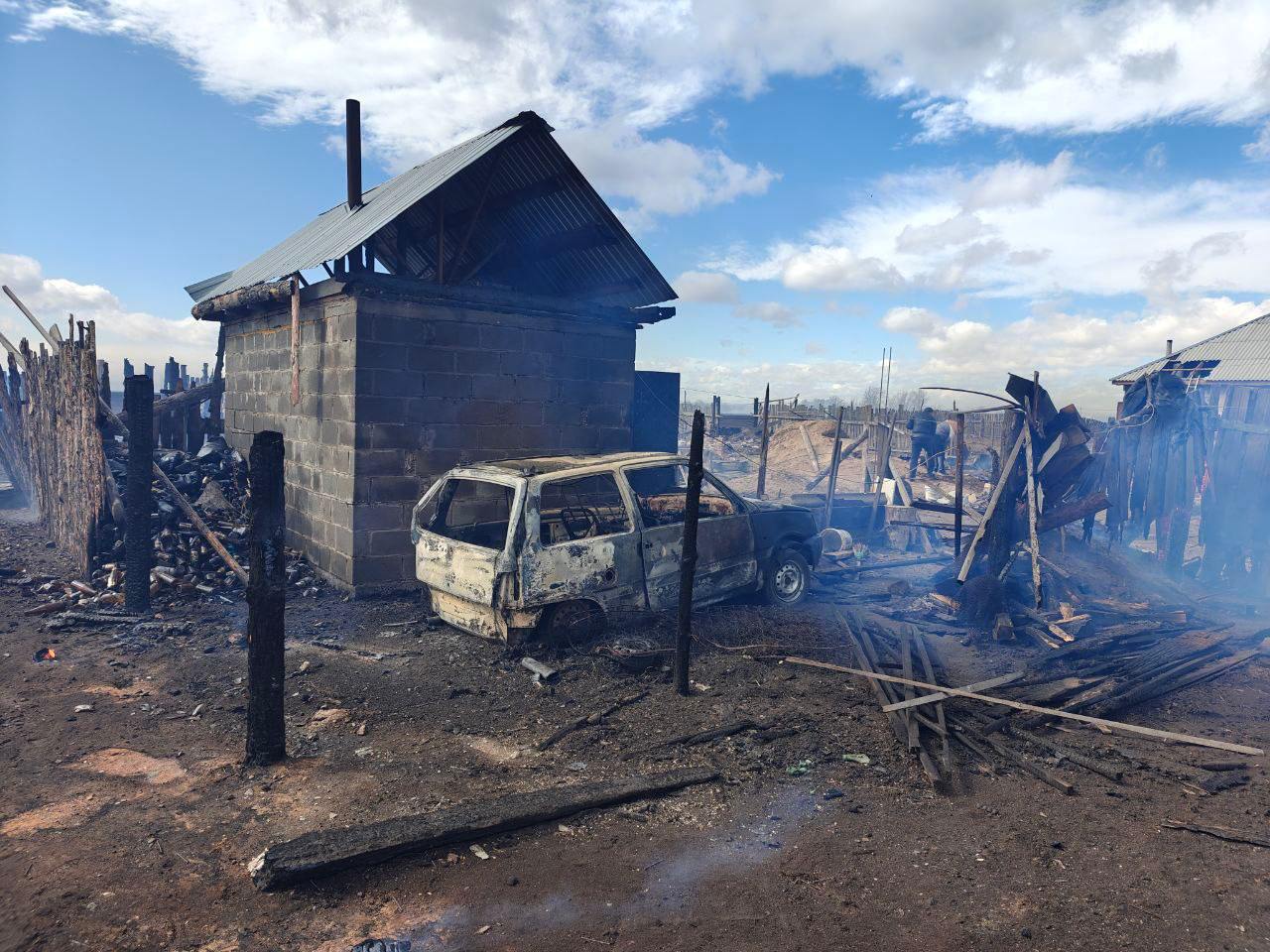 Rescuers are extinguishing fires in residential buildings, garages and outbuildings.