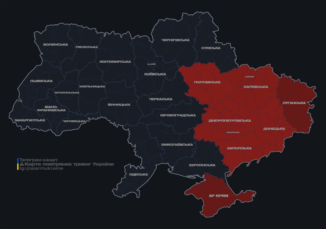 ❗️Угроза UAVs in Kiev and regions of Ukraine where an air alert has been declared.