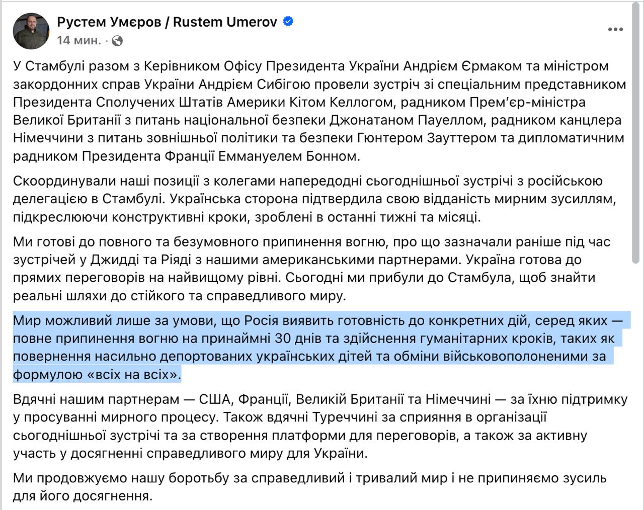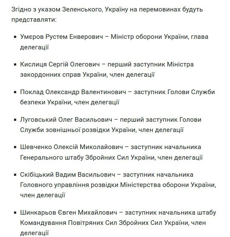 Meanwhile, the Ukrainian delegation, headed by Defense Minister Umerov, will arrive in Istanbul late tonight for talks with Russia. This was reported to Suspilne by a source in the Presidential Administration.