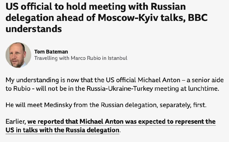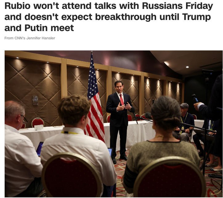 ❗️москва has sent a "second-tier" delegation to the talks, so the US does not expect significant progress, Rubio says.
