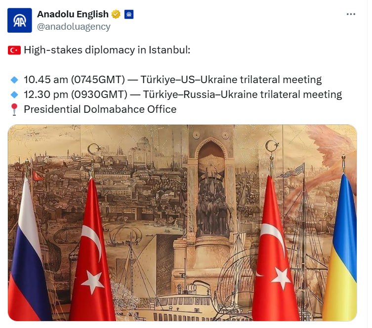 Tomorrow, Rubio will meet with Turkish Foreign Minister Fidan and a high-ranking Ukrainian delegation.