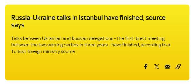 ❗️Встреча between Ukrainian and rf delegations ended after Moscow demanded withdrawal of Ukrainian troops from occupied territories - Sky News.