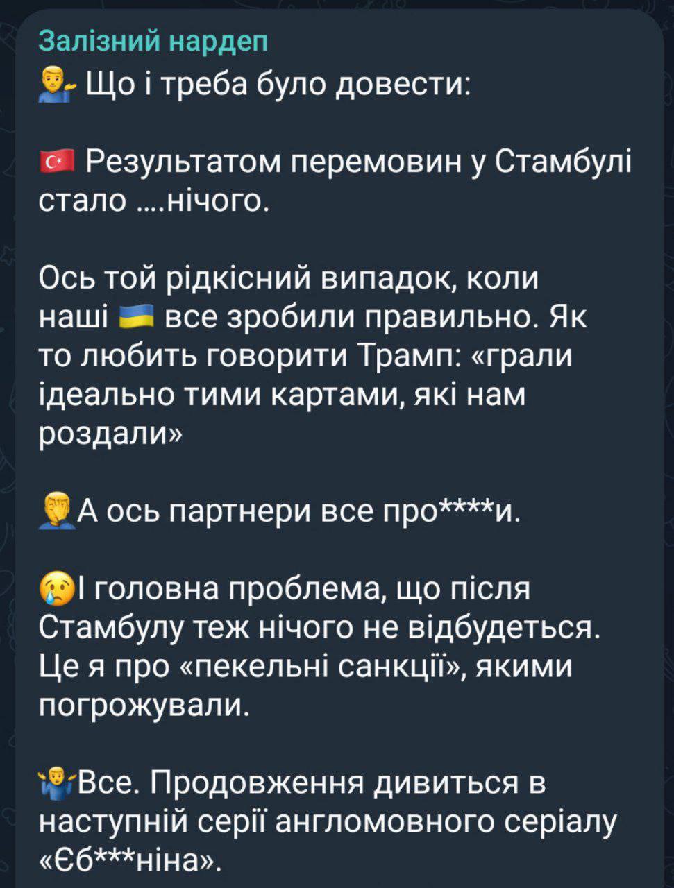 ❗️Результат negotiations in Istanbul - none - parliamentarian Zheleznyak