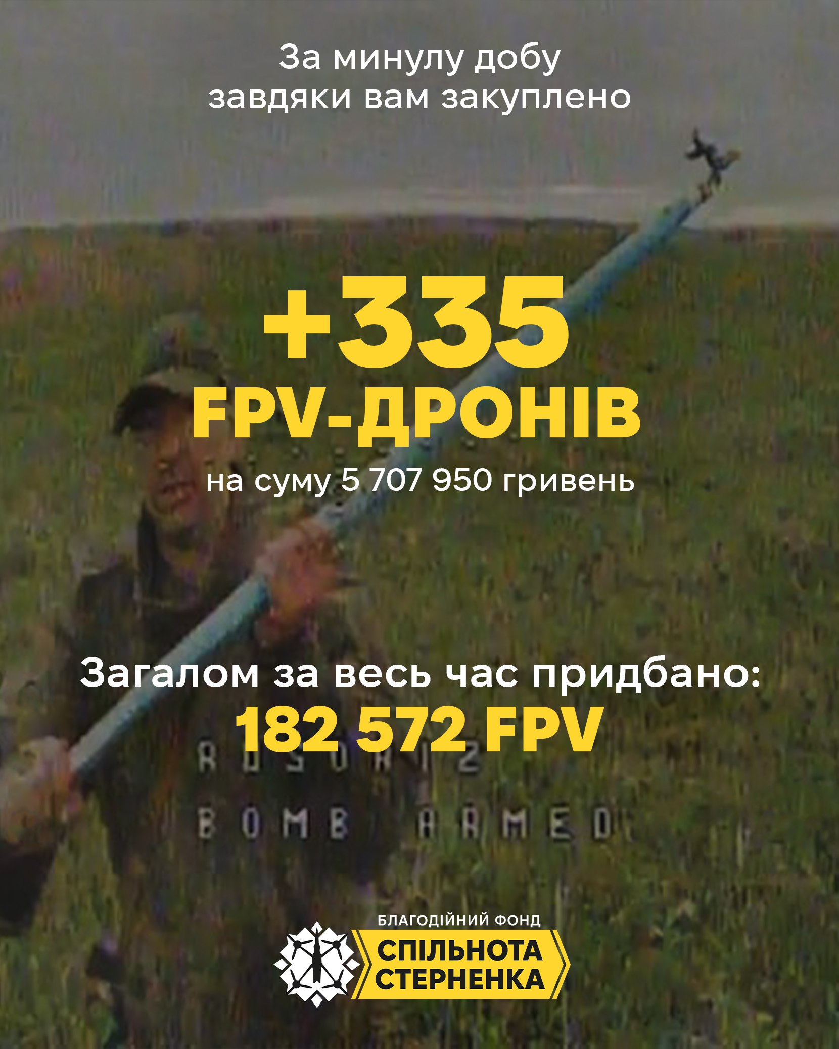 +335 FPV drones have been purchased over the past day thanks to you!