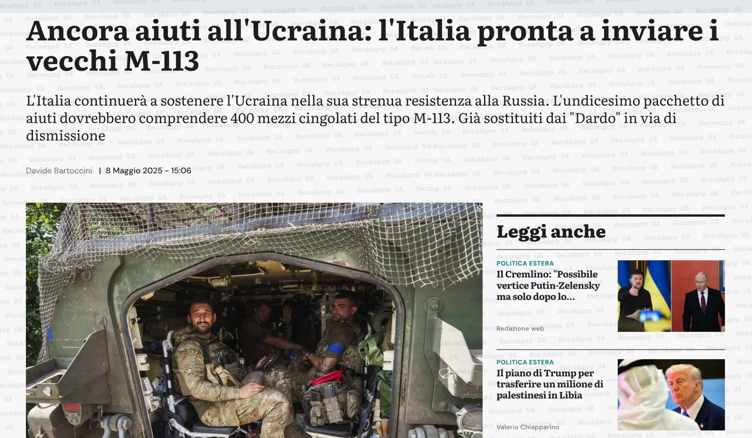 ❗️В Italy will transfer 400 M113 armored personnel carriers and anti-aircraft guided missiles for the SAMP-T system to Ukraine as part of a new aid package.