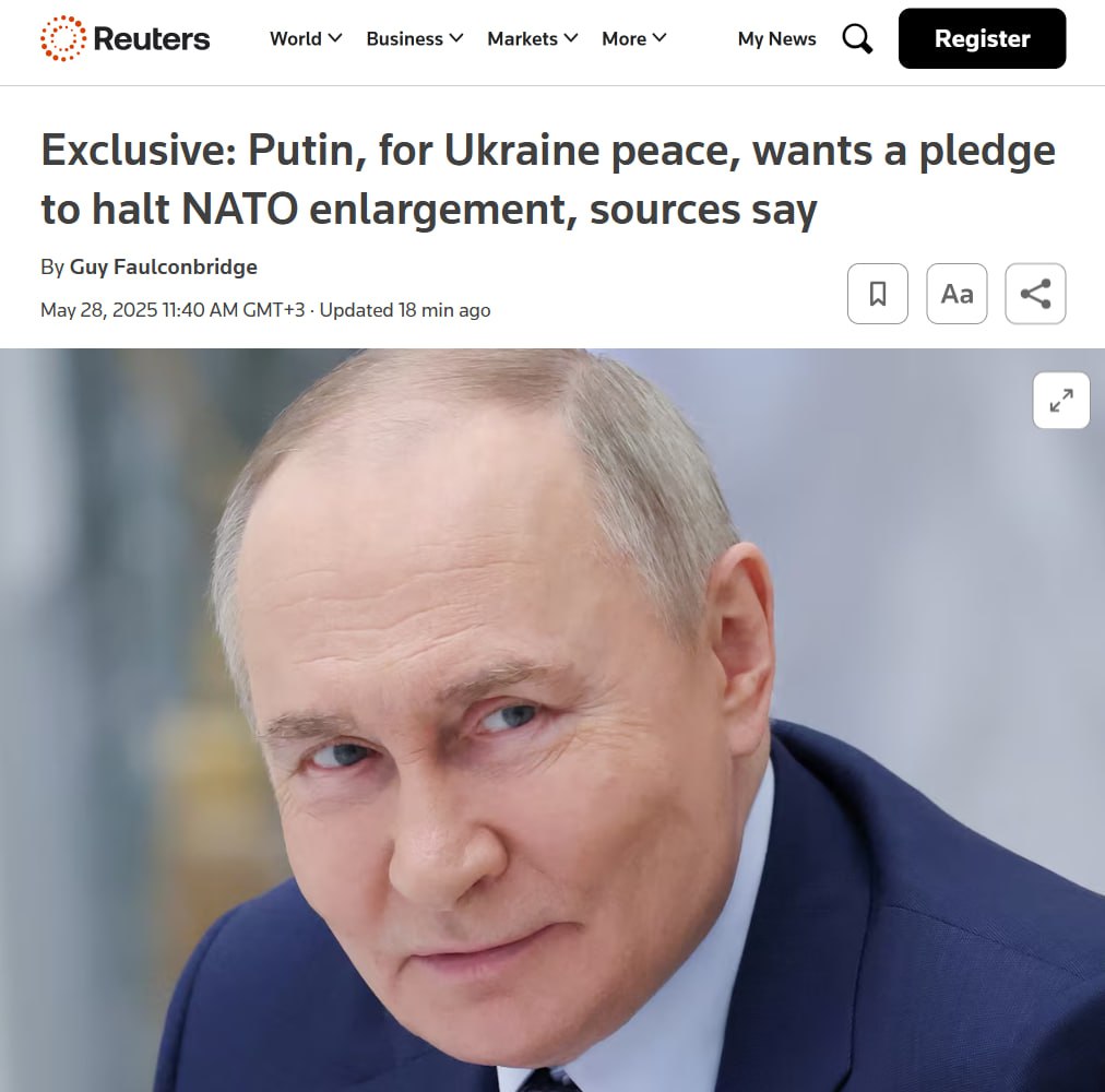 ⚫ Reuters publishes the terms on which Putin is allegedly ready to discuss peace: appetites are growing.
