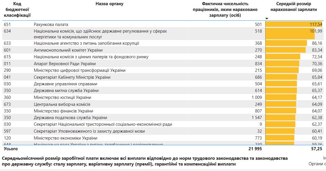 According to the Ministry of Finance, the average salary of central government employees in April 2025 amounted to UAH 57.25 thousand, which is 5.5% more than in the previous month. Employees of the following government agencies receive the most on average.