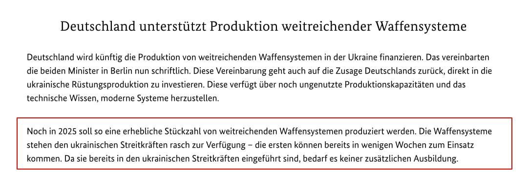 "A significant number of long-range weapons systems are to be produced by 2025. The weapon systems will be quickly available to the Ukrainian armed forces - the first ones can be deployed in a few weeks. Since they have already been put into operation in the Ukrainian armed forces, no additional training is required," the German Defense Ministry said.
