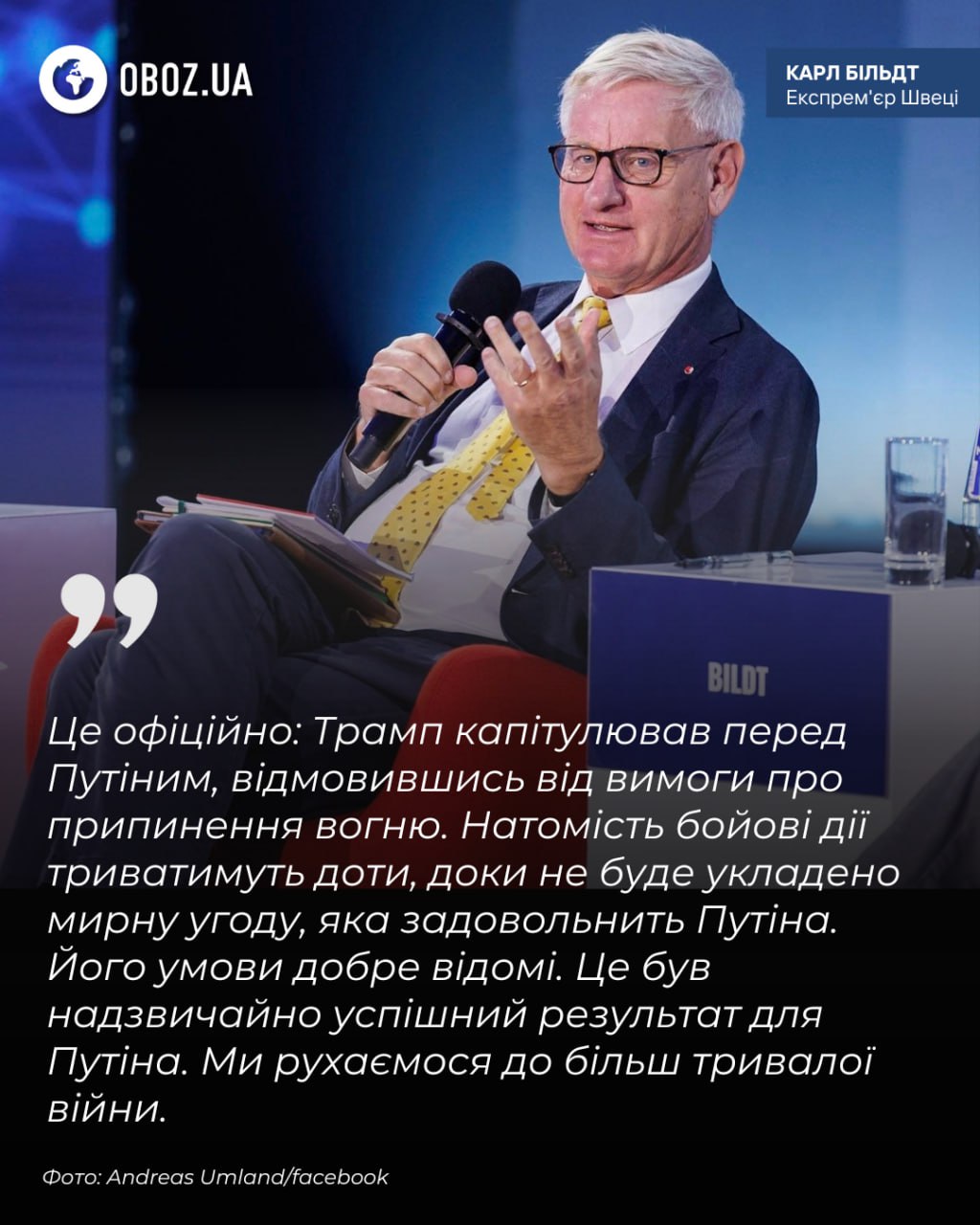 🟦🟦 Trump capitulated to Putin, we are moving towards a longer war - Bildt