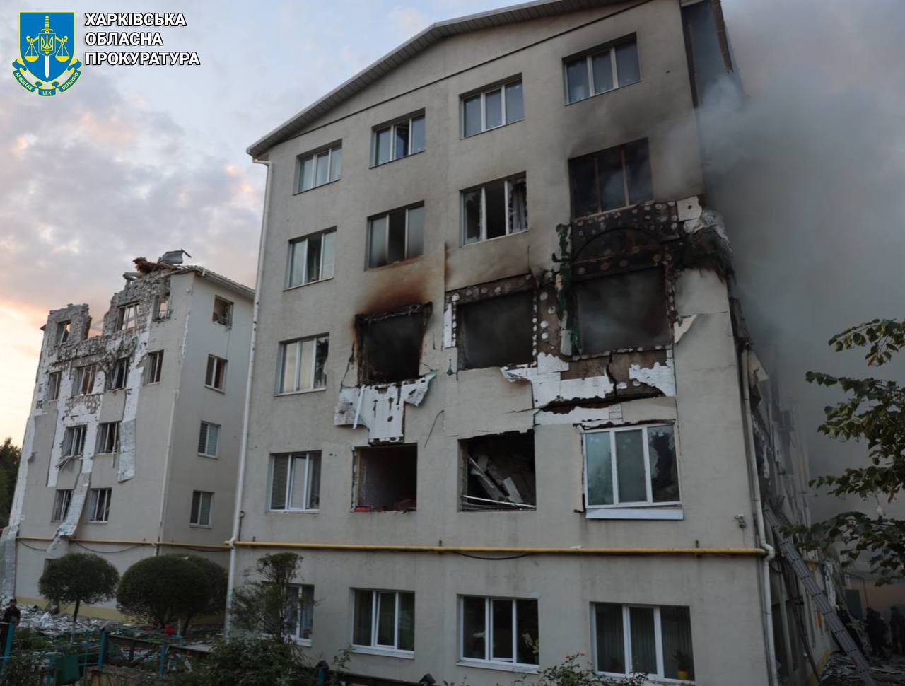 "According to the investigation, on August 18, around 5:00, five enemy drones attacked an apartment building in the Industrial district of Kharkiv. The attack resulted in the partial destruction of the building - the interfloor ceilings collapsed," the Kharkiv Regional Prosecutor's Office said.