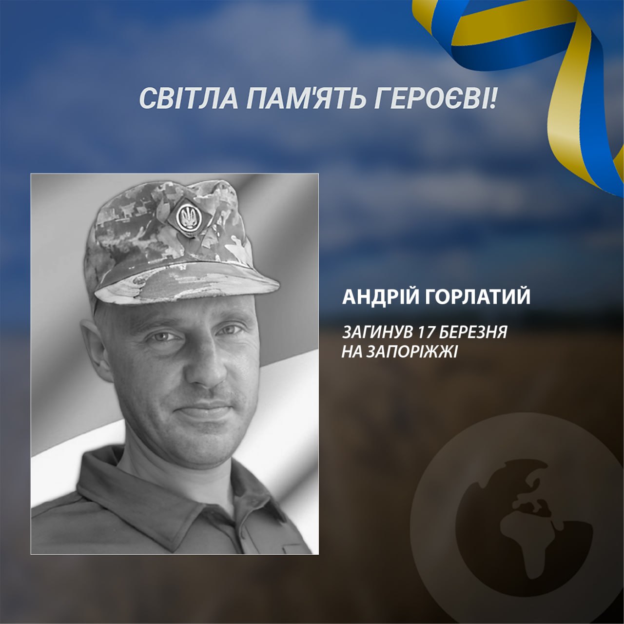 Unfortunately, on March 17, 2024, Andrii Horlatyi was killed while performing a combat mission in Zaporizhzhia region... He is survived by his mother, son, sister and brother.