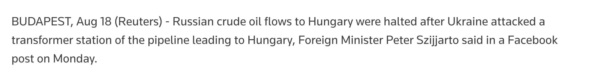 He emphasized that Hungary had been told for years that Moscow was an unreliable partner, and Budapest had nevertheless made "every effort to maintain its dependence on Russia," even after the outbreak of a full-scale war.