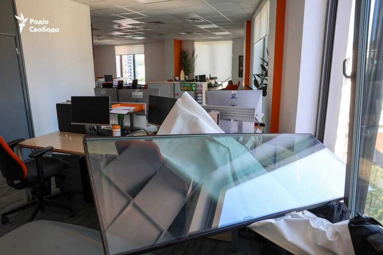 Dniprovsky district: a 25-storey residential building was damaged, private cars in the yards were damaged. There was a fire in an office building. Information about new locations with damage in the district continues to be reported.