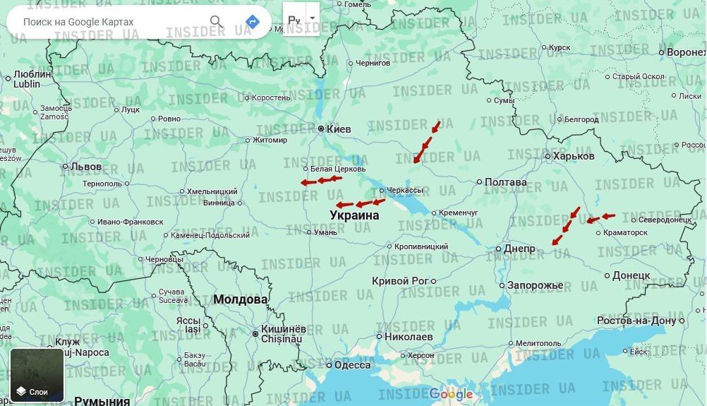 ❗️Днепр, Zaporizhzhya, Kyiv, Lutsk, Starcon - increased danger. Judging by the routes of UAVs, these cities are priority targets for missiles