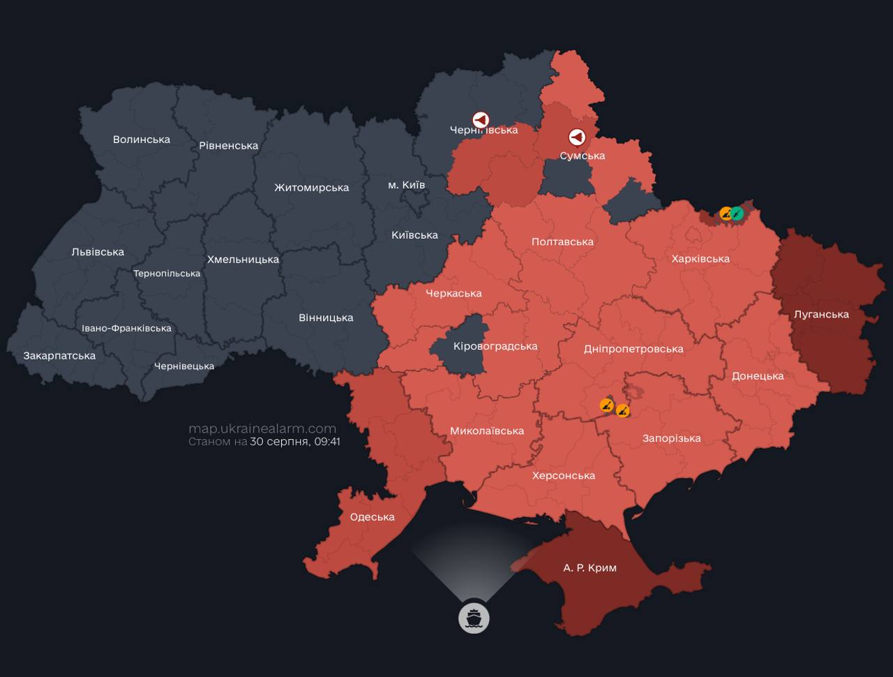 All missiles are flying to Cherkasy region! There is also ballistics to Dnipro/Pavlohrad!