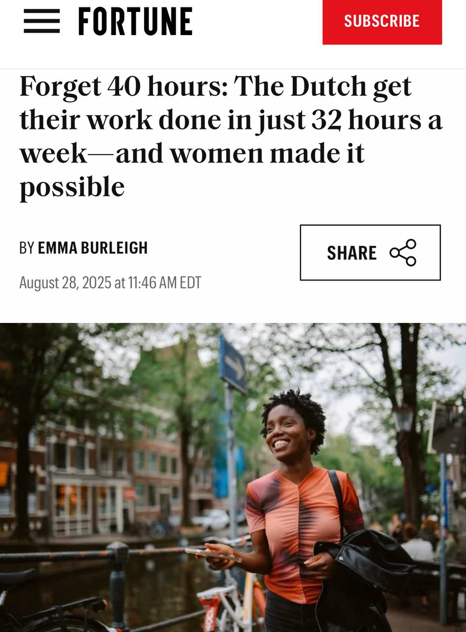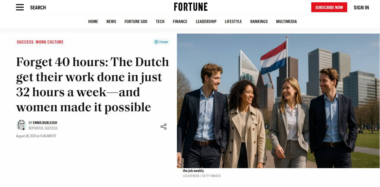 The Netherlands has switched to a four-day working week: now 32 hours instead of 40, and Friday is also a day off