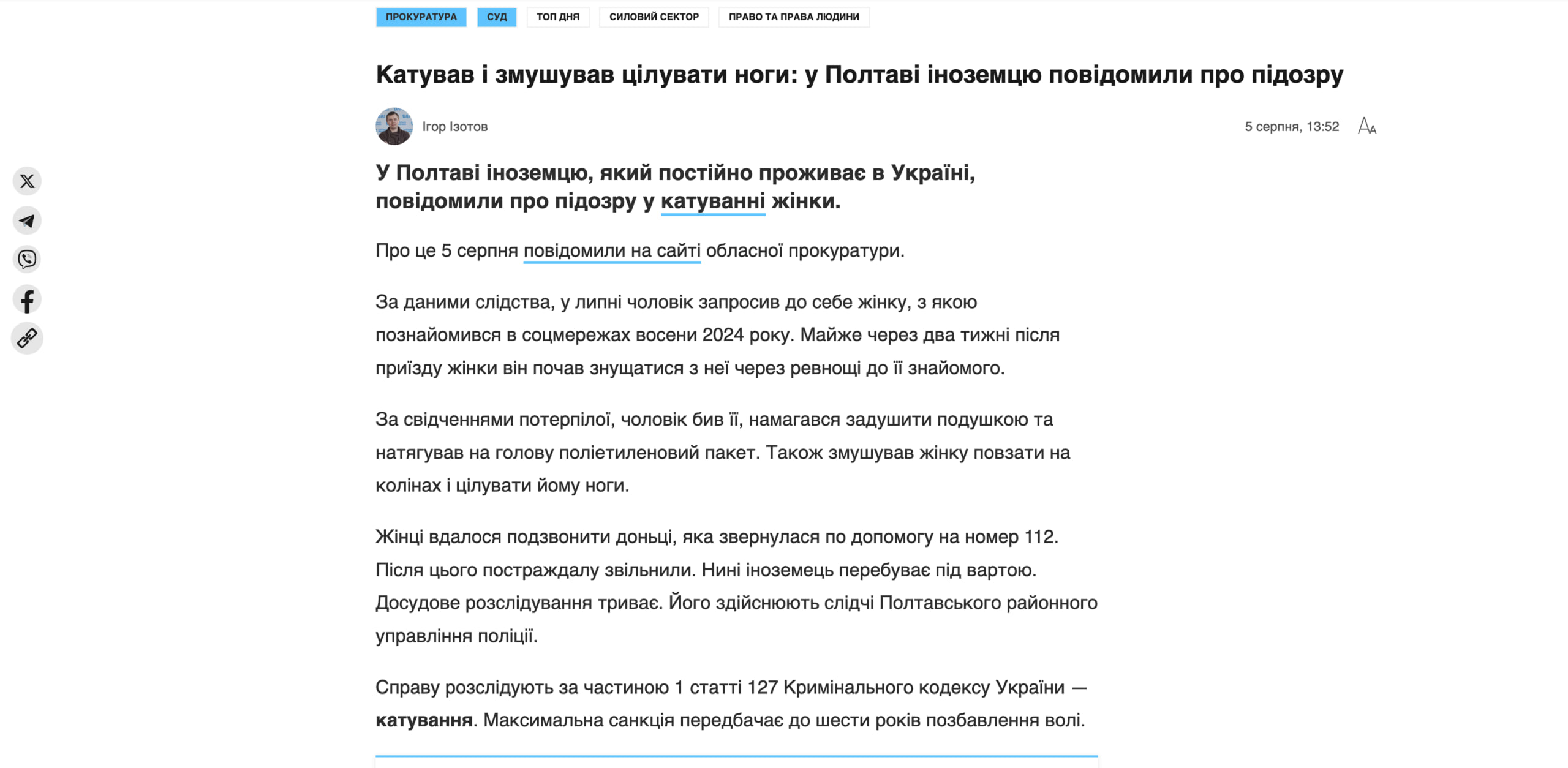 The SBU investigators served him a notice of suspicion under Part 3 Art. 114-2 of the Criminal Code of Ukraine (unauthorized dissemination of information on the movement and deployment of the Armed Forces under martial law).