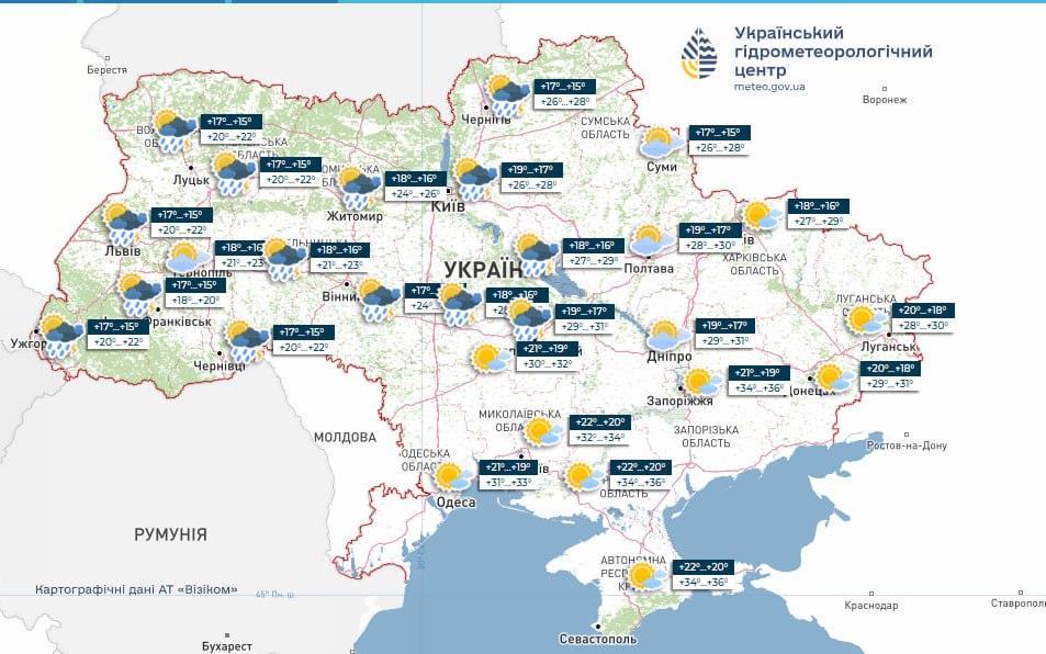 According to the forecast of the Lviv Regional Center for Hydrometeorology, a thunderstorm, strong winds of 15-20 m/s, and hail up to 19 mm in diameter are likely in Lviv.
