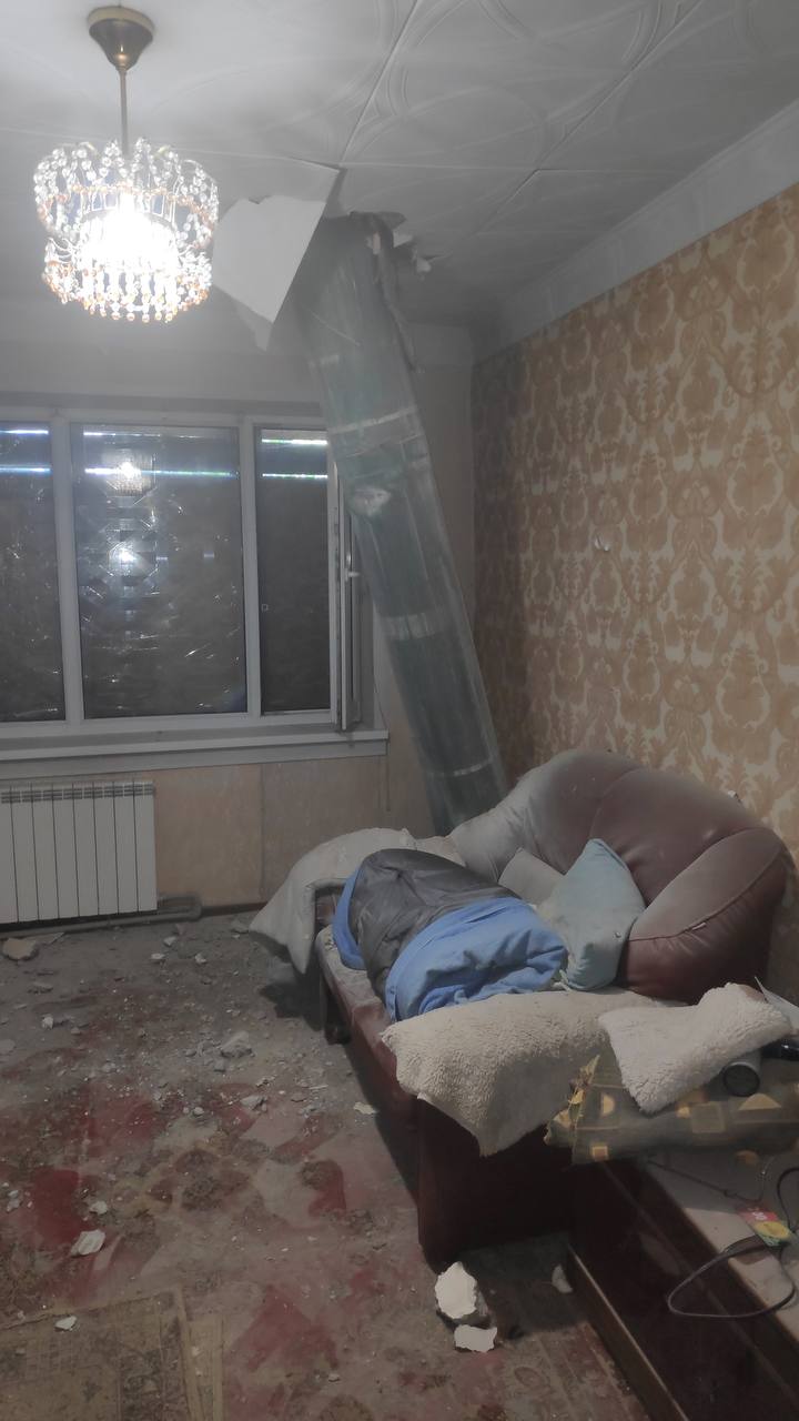 In Dobropillya, Donetsk region, a missile penetrated a five-story building and got stuck inside the building. Tin