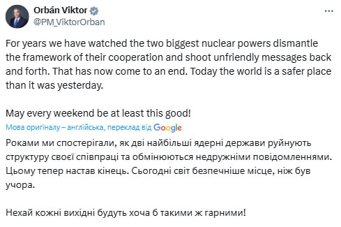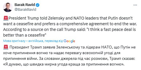 🔻Trump in an interview with Fox News rated the talks "a ten" and said that the matter is now up to President Zelensky.