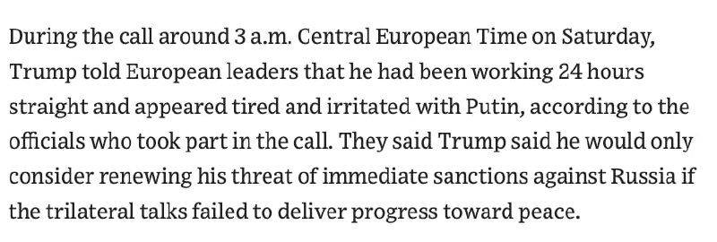 Trump looked exhausted and irritated after meeting with Putin during a conversation with European leaders - WSJ.