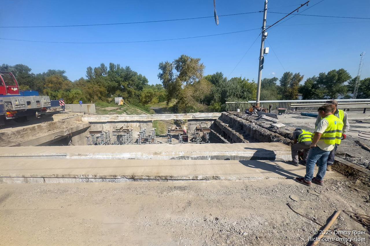 After the slab concreting was completed, they started replacing small purlins near the bridge over the Desenka River.